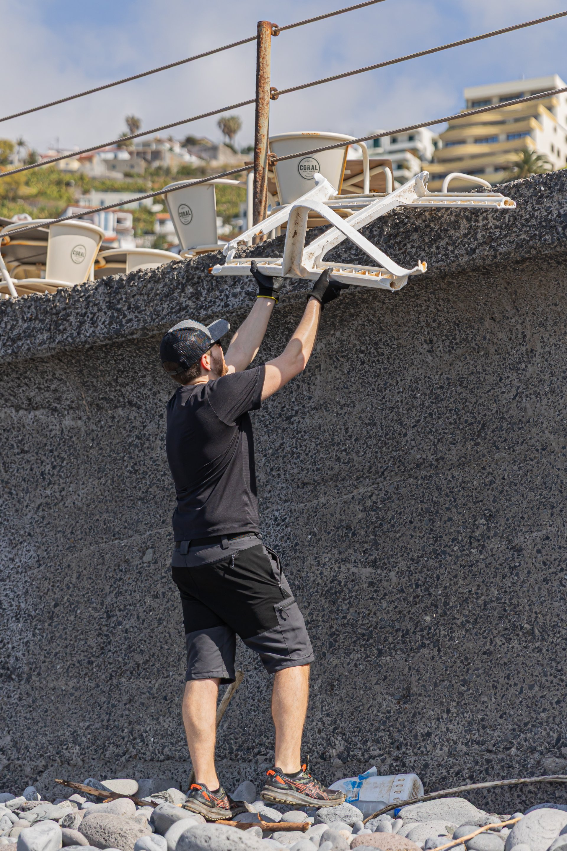 There was something powerful about seeing volunteers spread out across Praia Formosa, moving across the stones with purpose, carrying heavy bags, reaching into difficult corners, and helping each other along the way. It was a reminder that environmental care is not abstract. It is practical. It is physical. It is local. And it begins with showing up.